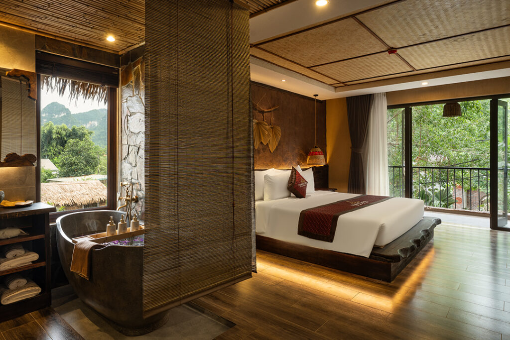 Located in Hai Nham Hamlet, Hoa Lu District, the resort lies in the heart of what many call “Halong Bay on land” — dramatic and serene at once.